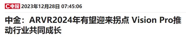 财联社先前曾提到,Vision Pro产品力强有望迎MR“iPhone时刻”,而空间视频功能有望进一步扩展VR的使用场景。两周前,中金公司研报也看好AR产品或将成为AI应用落地载体之一,2024年亦有望加速放量。