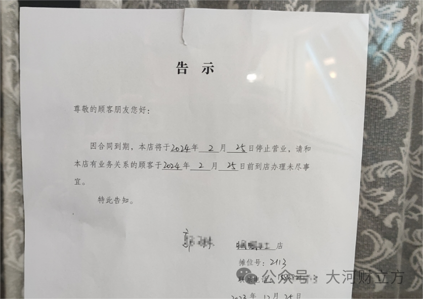 没几日,变数坐实。多家商户门口贴出闭店告示称,陈砦花卉大学路店将于2024年2月25日正式关闭。