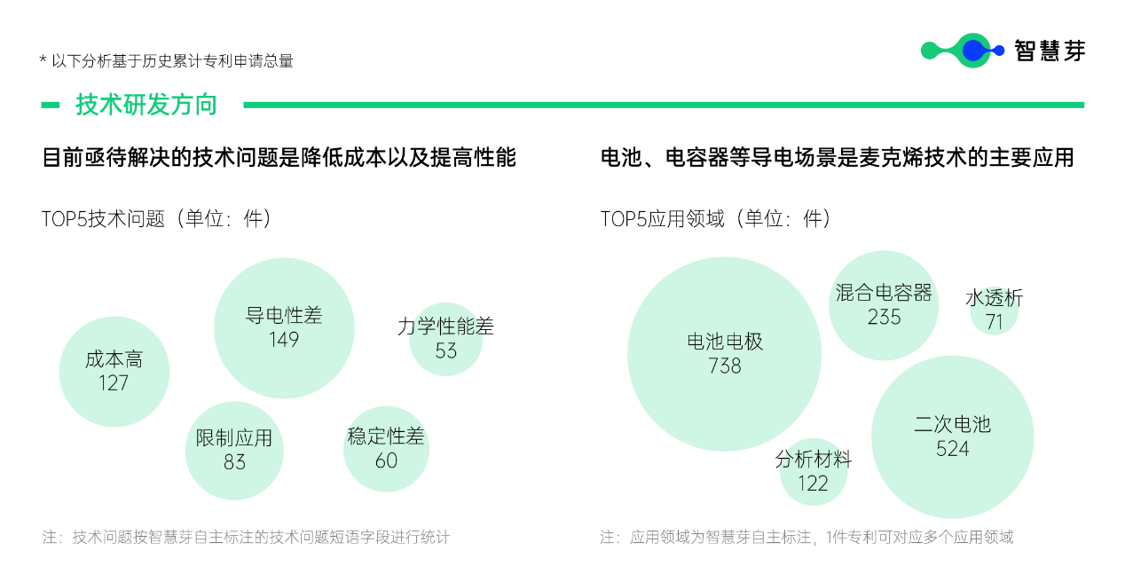 问世于2011年的麦克烯是二维过渡金属碳化物和氮化物,是目前最具潜力的导电材料之一。凭借其杰出的金属导电性、良好的亲水性以及高氧化还原活性,能够应用于电池、电容器等领域。2023年,约有1500件相关技术专利申请,较上年实现60%的增长,成为追赶“新材料之王”石墨烯的又一匹潜力黑马。