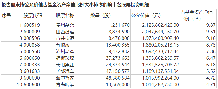 易方达蓝筹精选前十大重仓股 来源:基金公告