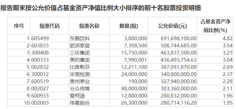 易方达消费行业前十大重仓股 来源:基金公告