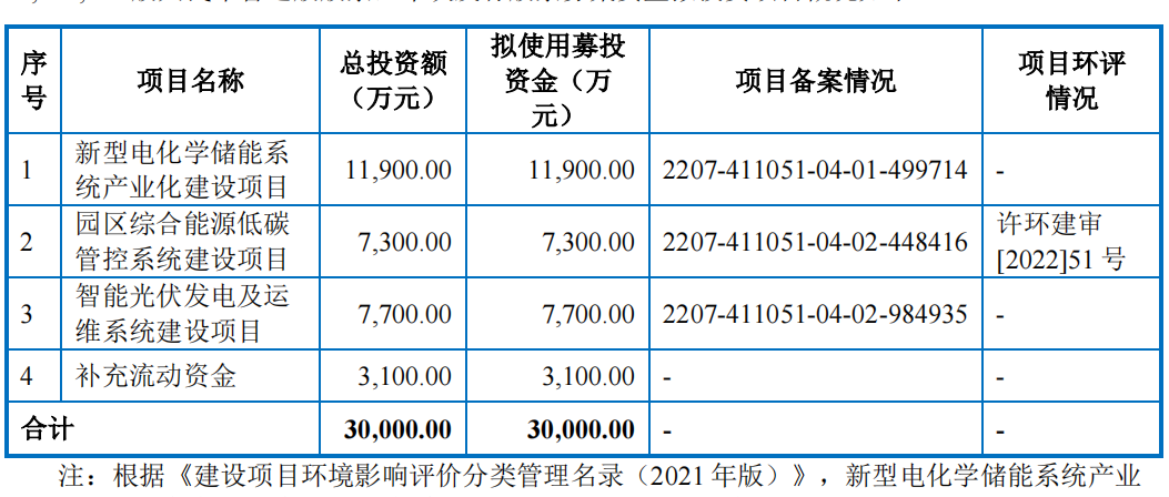 招股书显示,许昌智能此次上市拟募资3亿元,其中1.19亿元投资新型电化学储能系统产业化建设项目、0.73亿元投向园区综合能源低碳管控系统建设项目、0.77亿元投向智能光伏发电及运维系统建设项目,剩余0.31亿元补充流动资金。
