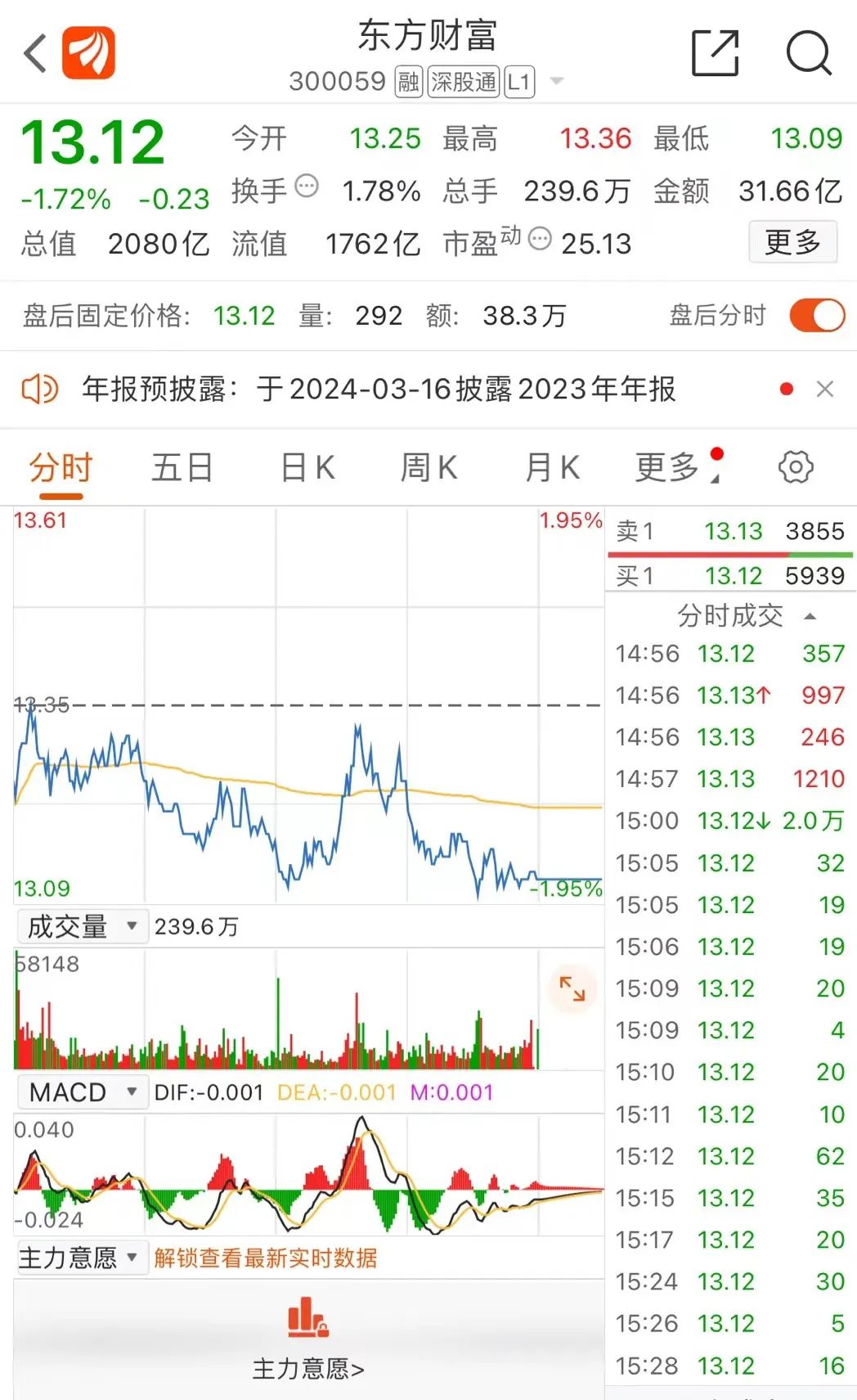截至1月26日收盘,东方财富报13.12元/股,最新市值为2080亿元。