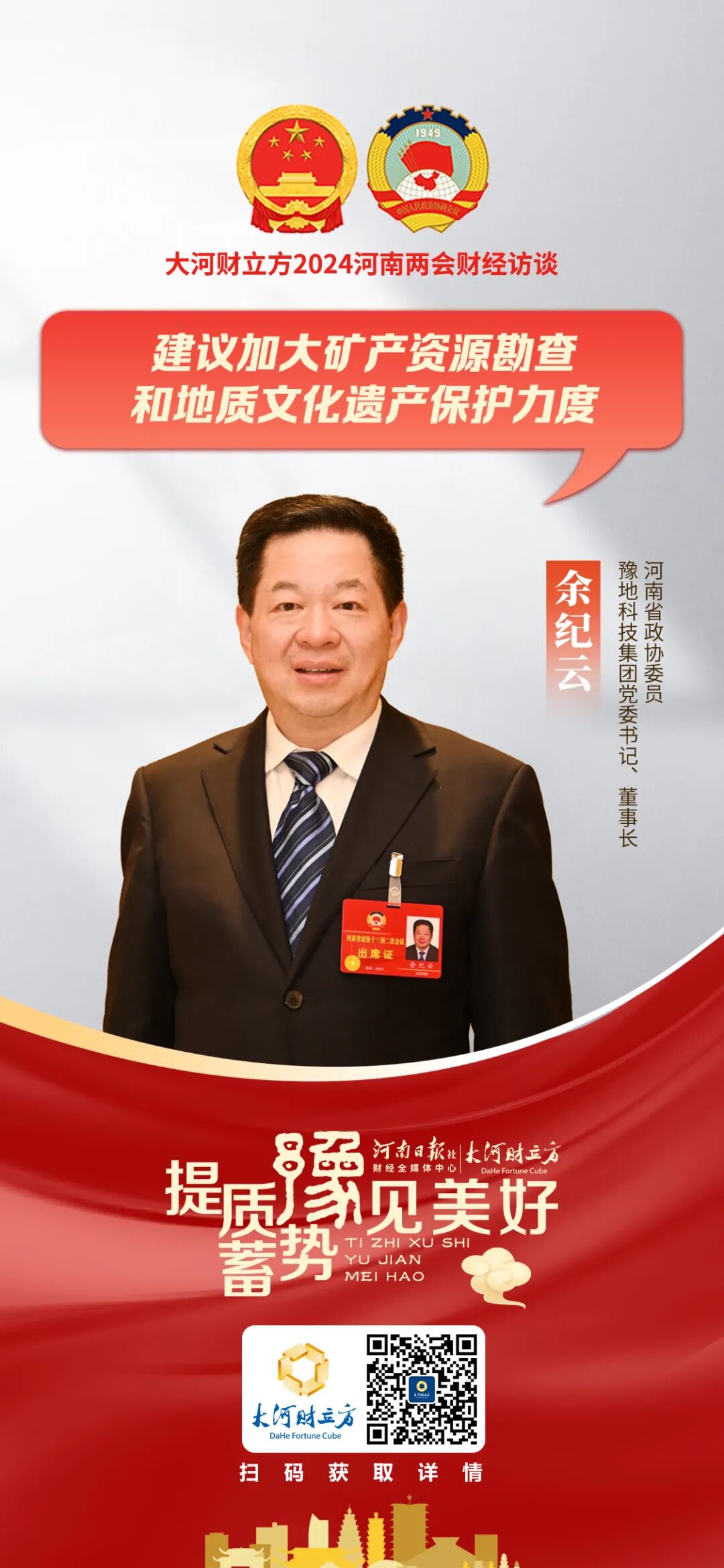 今年省两会期间,省政协委员、豫地科技集团党委书记、董事长余纪云在接受大河财立方记者采访时表示,今年提交了两份提案,分别聚焦加大矿产资源勘查开发力度和加大地质文化遗产保护,前者旨在保护国家能源资源安全,而后者则有助于助推文旅强省建设。