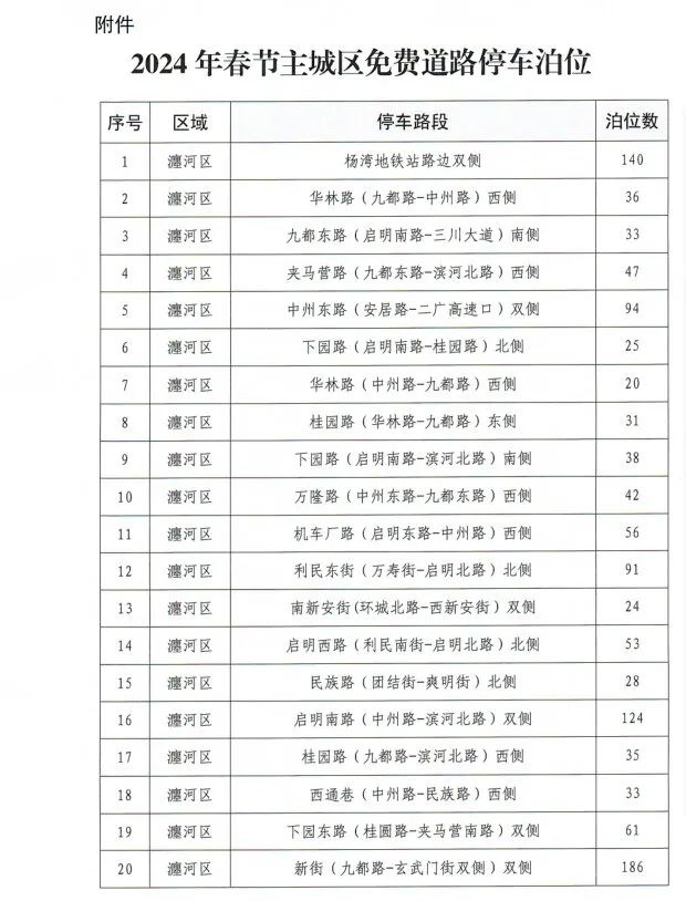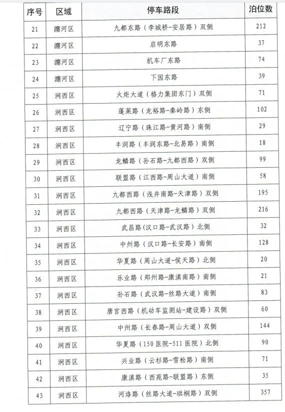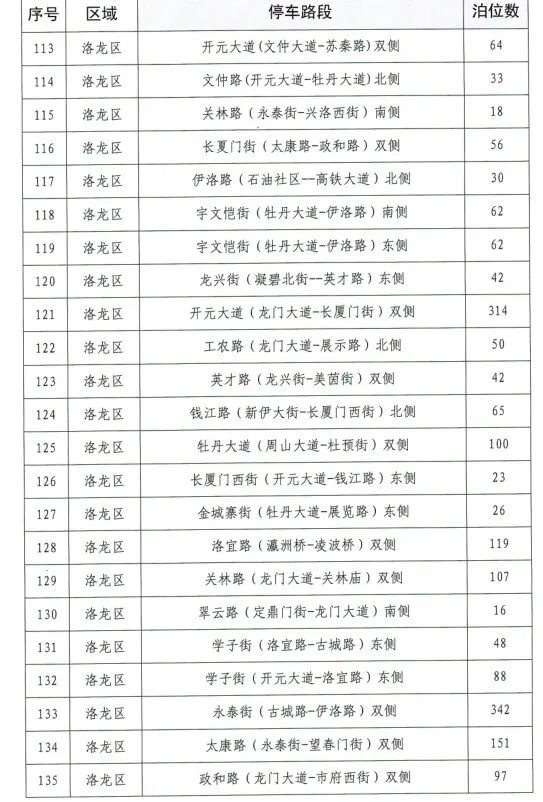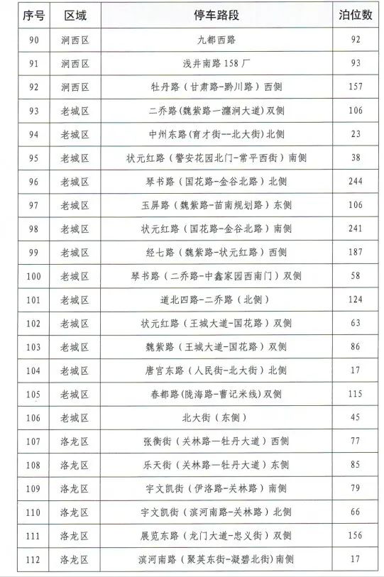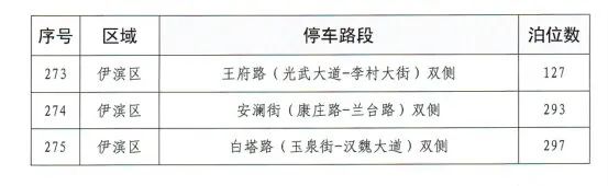 2月4日,记者从洛阳市城管局获悉,今年春节期间,洛阳市主城区路内停车泊位将实行免费停放,共涉及275条道路、26801个泊位。
