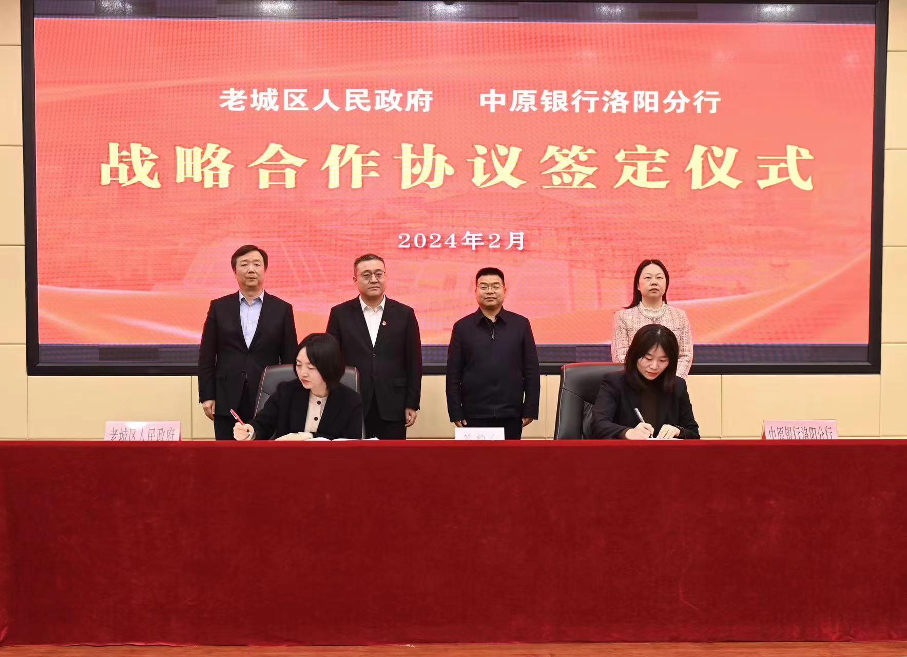 中原银行洛阳分行党委委员、行长助理李聪,老城区委常委、宣传部部长、副区长丁雪峰代表双方在合作协议上签字。