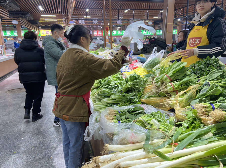 市民崔先生称,自己和女儿平时都在南方工作,口味更偏清淡,过年回来年货购置差不多了,特意在家附近的农贸市场买些新鲜蔬菜,健康也方便。