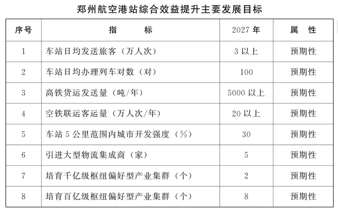 (二)发展目标。到2027年,郑州航空港站综合效益提升取得显著成效。