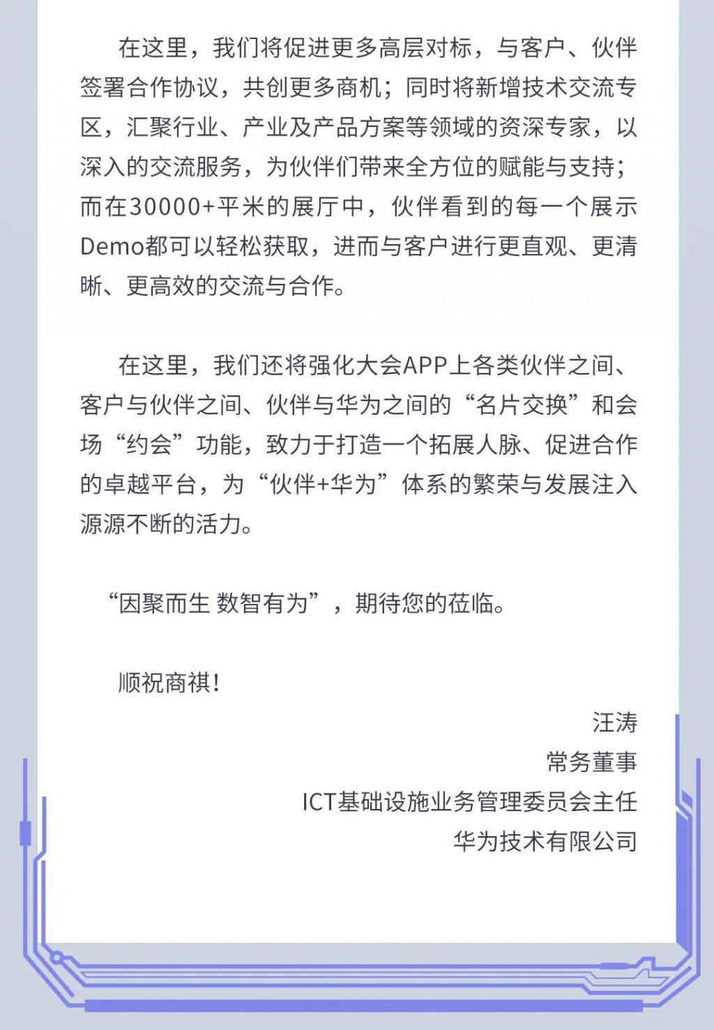 据介绍,华为将系统阐述伙伴政策和激励计划;全面介绍 " 伙伴 + 华为 " 体系 " 研、营、销、供、服、管 " 的端到端升级;携手伙伴探讨与展示 " 伙伴 + 华为 " 体系的数智化升级;并将面向 NA、商业和分销市场带来全新方案和适销新品。