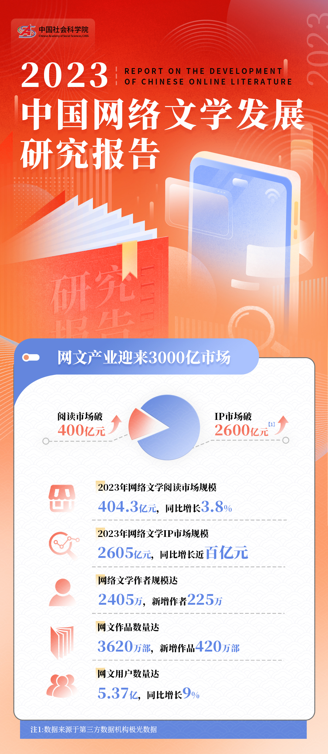 【大河财立方消息】日前,中国社科院发布《2023年中国网络文学发展研究报告》。2023年,中国网络文学产业增长势头不减,同时受到精品化、IP转化提速、全球化等趋势推动,进一步呈现出创造性转化、创新性发展新格局,并依托多方共创华语IP的积极探索,在全球视野下将大众创作、全民阅读风潮推向新高度。