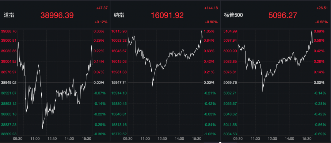 符合预期的PCE通胀报告,暂时缓和了市场担忧。隔夜美股收盘,美股三大指数集体上涨,道指涨0.12%,纳指涨0.9%创收盘新高,标普500指数涨0.52%。热门科技股多数上涨,AMD大涨超9%,续创新高,总市值站上3000亿美元;ARM涨超5%,亚马逊、英伟达、英特尔涨超2%,谷歌、Meta涨超1%。