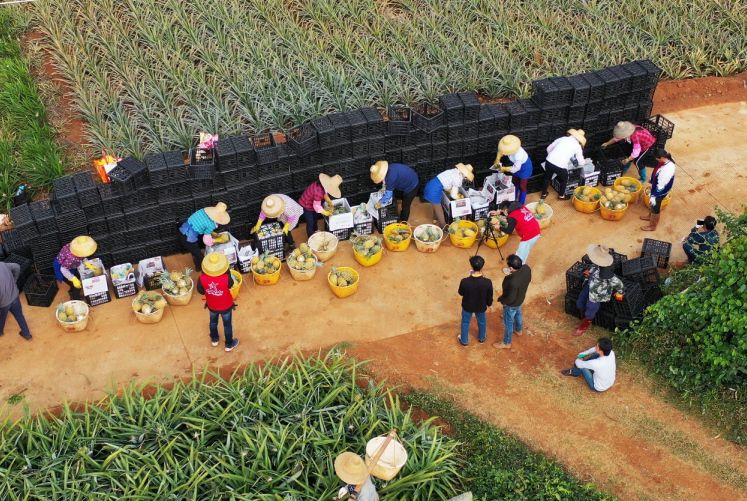 2020年2月19日,在拼多多主导下,一场特别的助农直播在菠萝地里展开。时任县长亲自走进助农直播间,切菠萝、吃菠萝,倾情为徐闻菠萝代言,引得超30万网友围观、近30万斤菠萝销售一空。这场直播也为当地农户打开了经营思路,直播带货、线上流通开始成为徐闻菠萝的主要销售模式之一。