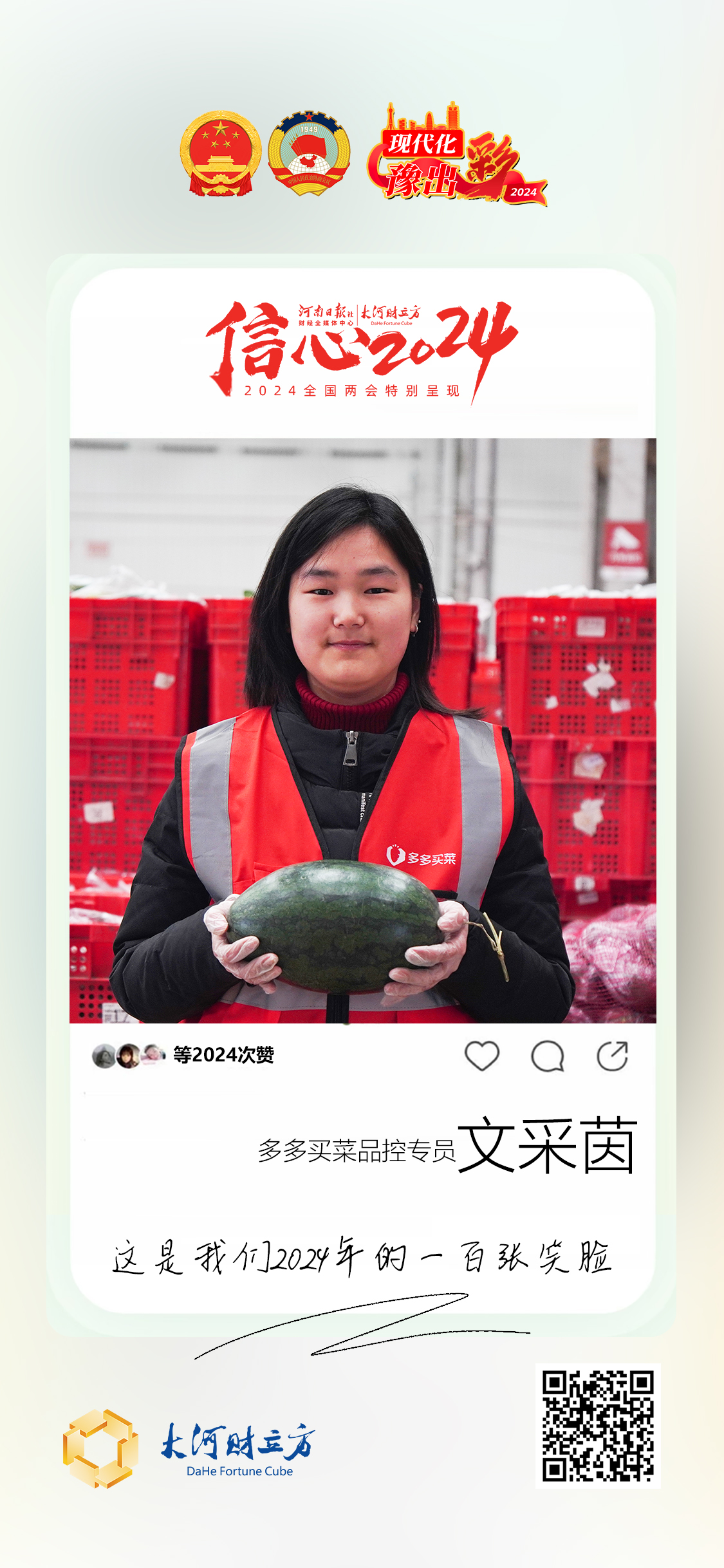 “我今天对果蔬品质把控是否严格,关系到消费者第二天提货时的体验感,我希望我对果蔬品质的严格把关,可以让多多买菜成为消费者心中实惠、安心、便民的买菜方式。”文采茵说。