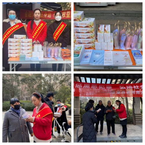 在漯河,3月13日,泰康人寿的宣传小组走进金地雅苑、金地兰乔社区(如下图),设置咨询服务展台,向社区居民和物业工作人员发放宣传资料、普及保险知识、宣传保险理念,同时对金融消费者八大权益、反洗钱、个人信息保护、防范网络诈骗、守住钱袋子等内容进行宣传,提高群众的金融安全防范意识。