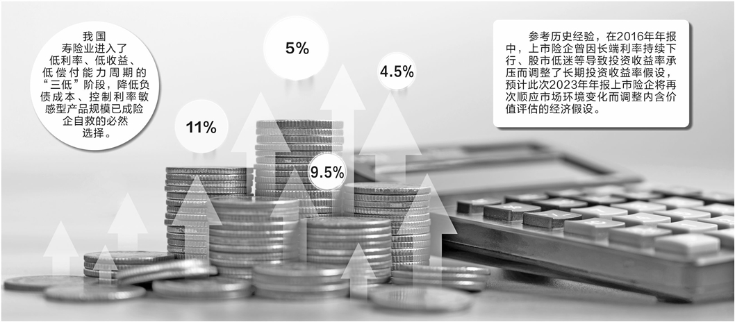 长端利率下行所带来的影响正在持续。近日,中国平安在公布的2023年度财报中,将长期投资回报率假设从5%下调至4.5%,这也是该假设7年来首度下调。