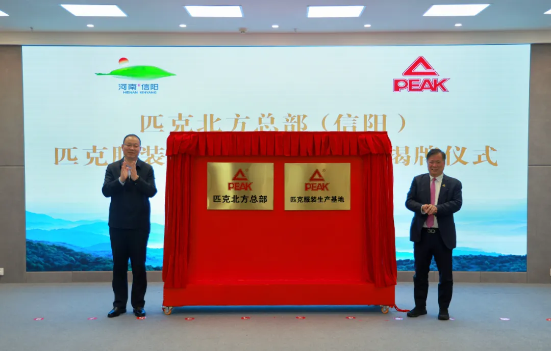 3月25日,匹克集团北方总部和服装生产基地揭牌仪式在市行政中心举行,标志着信阳市与匹克集团的合作迈出了新的一步,将会有力助推信阳培育纺织服装产业生态、打造时尚纺织千亿级产业集群。