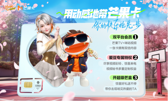 2023年7月16日,具有动感地带与芒果TV双品牌青春基因的动感地带芒果卡正式发行。它以“内容+IP+网络+应用”的全新产品模式,以流量随心、热爱随身、会员随享的多重文娱资源和全场景定制权益,以咪咕视频、芒果TV双平台会员和一系列特色权益与潮流活动,打造了一种吸引年轻人、聚集年轻人、受年轻人喜爱的全新潮流生活方式。