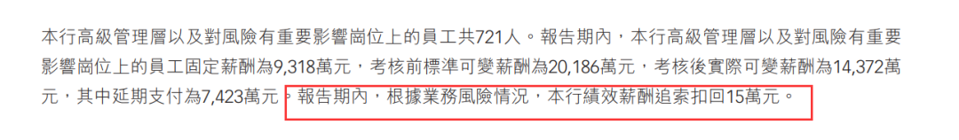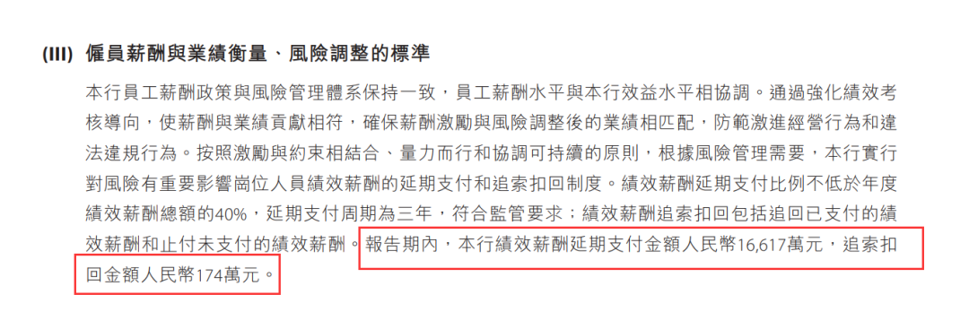 在港上市的天津银行近期首次披露了向员工“追薪”的具体数据,2023年度共计追索扣回174万元。