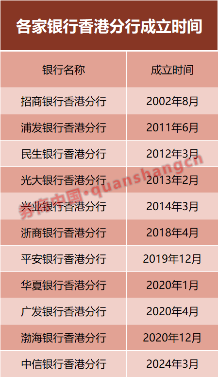 已有多家股份行设立香港分行