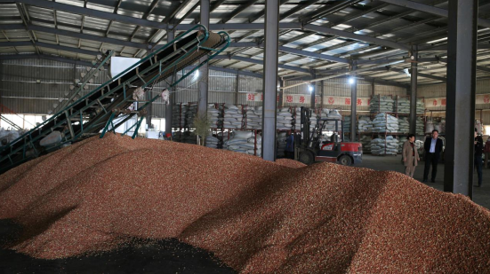 张寨村花生米加工基地里的花生米“小金山”。汪少冲摄