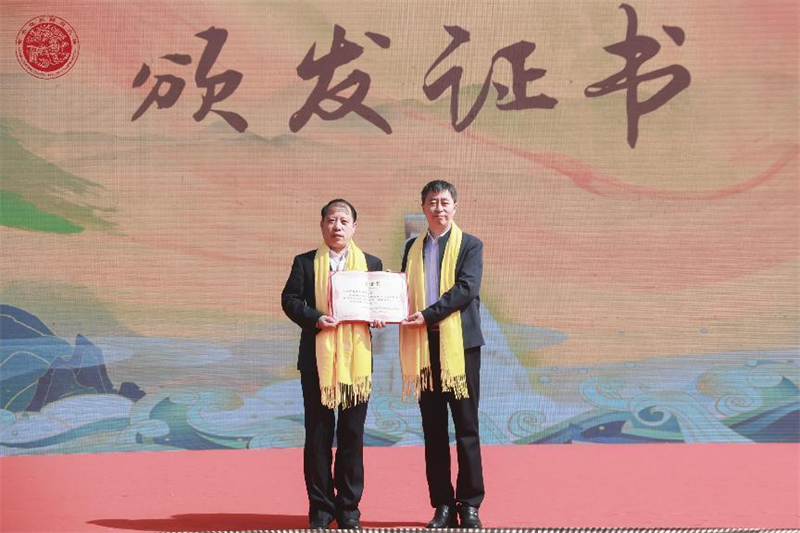 3月29日,“甲辰龙年黄帝故里拜祖大典供奉用酒——仰韶彩陶坊灌装仪式”在河南渑池仰韶生态酿酒园区举行。活动现场,郑州市政协办公厅副主任、甲辰年黄帝故里拜祖大典组委会办公室执行副主任乔磊为仰韶酒业集团颁发了“甲辰年黄帝故里拜祖大典供奉用酒证书”。