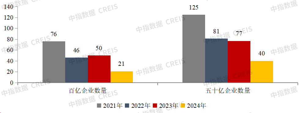 图:2021年至2024年1-3月百亿、五十亿房企数量