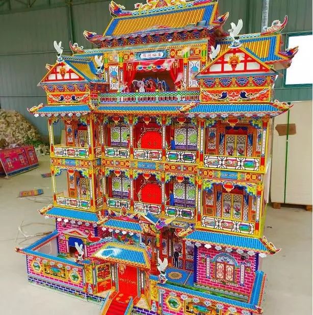 河北省保定市雄县米家务镇某殡葬用品厂相关工作人员也对中新经纬表示,没有网传图片中“两层楼”高的纸扎别墅,工厂所售最高的纸扎别墅名为“望云楼”,高2.9米,出厂价520元,以半成品的形式发货,收到货后需进一步组装。