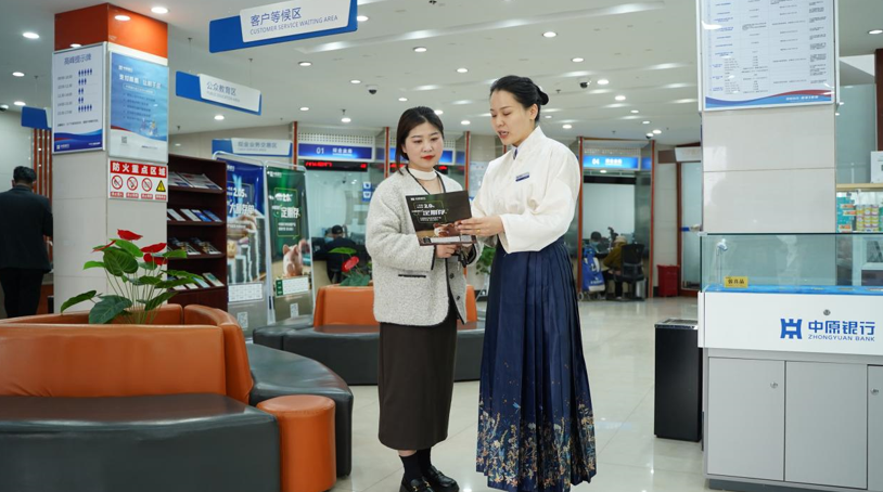 “中原银行恭迎各位贵客”,在一声声迎接中,中原银行洛阳分行邀请广大客户走进英才路支行、九龙鼎支行、金业支行、唐宫中路支行、中州中路支行、洛龙区支行、华阳支行、万豪中心支行、老城支行、宜阳支行、汝阳支行,在办理业务的同时共赴一场“国风之旅”。 以花为媒,职业装变身汉服,让每位到访客户眼前一亮。此次汉服特色体验服务,是中原银行洛阳分行响应河南省“文旅文创融合战略”的一次有益尝试,通过汉服等中国传统文化元素植入,提升金融服务水平和客户体验感,网点统一的蓝色调与汉服的摇曳生姿有机融合,让客户感受到“金融+文旅、汉服+服务”的独特魅力,成为洛阳金融业服务多样化的生动体现。