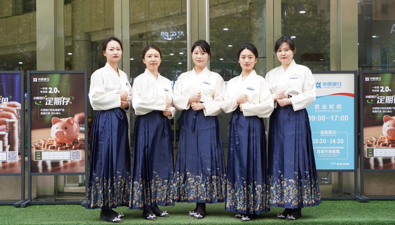牡丹文化节期间,中原银行洛阳分行11家支行积极打造汉服特色网点,全体员工身着具有中国传统文化特色的汉服,为客户带来别具一格的汉服特色体验服务。