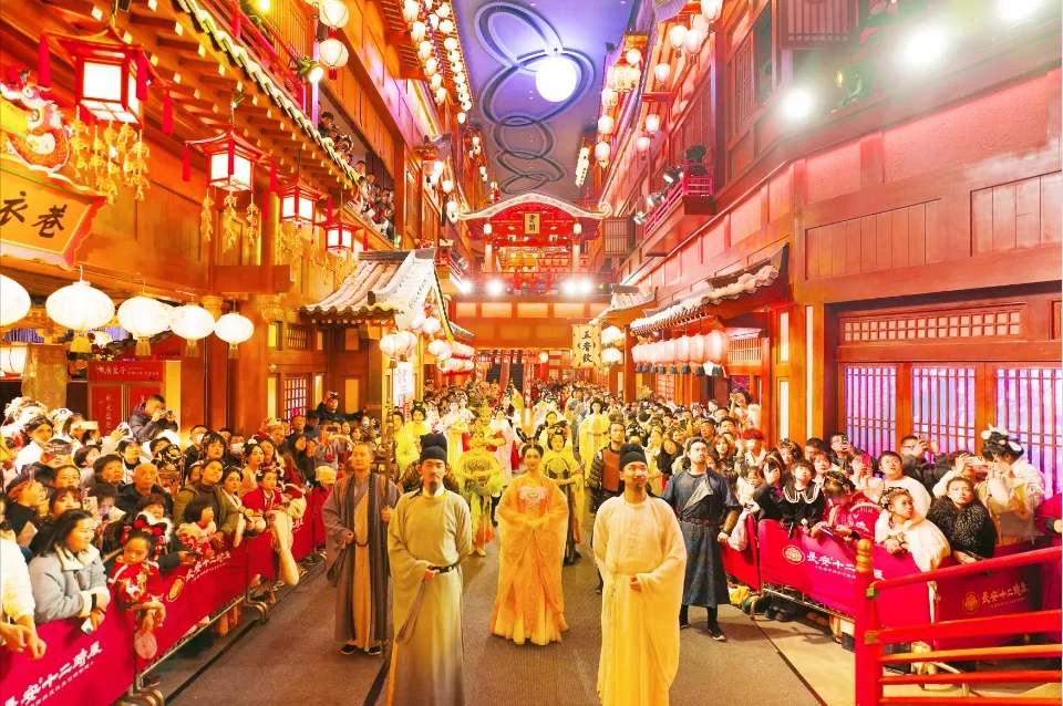 近年来,西安全面提升秦始皇陵、汉长安城未央宫、唐大明宫等考古遗址公园保护展示水平,打造高品质“博物馆之城”。同时,积极运用场景化、科技化、时尚化手段,让文物活起来,这为西安文旅产业发展打下深厚基础。曲江文投股份有限公司副总经理赵茜介绍,早在2000年初,西安就率先谋划设立了曲江文化产业示范区。2018年开始,其旗下的大唐不夜城文旅发展有限公司通过对盛唐文化的深入挖掘,依托网络平台传播,打造了巧笑嫣然的“不倒翁小姐姐”、爆梗不断的“房玄龄”与“杜如晦”、一动不动的“悬浮武士”等现象级文化IP。
