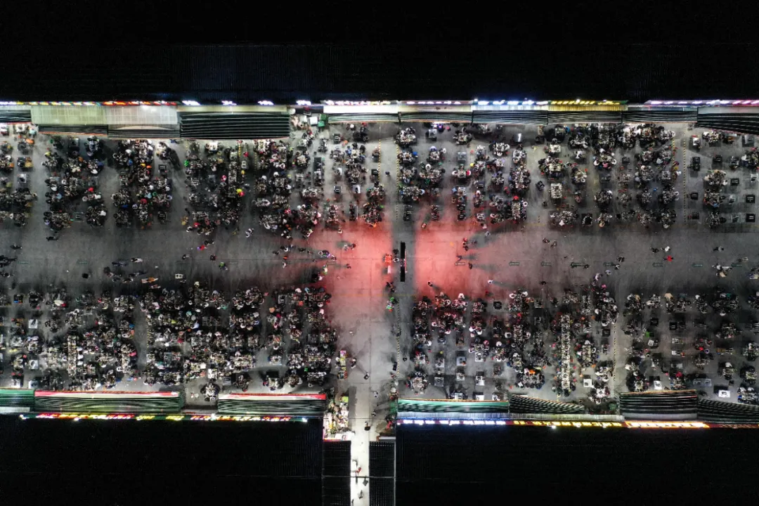位于淄博市临淄区的临淄烧烤大院(无人机照片)。朱峥摄(新华社)
