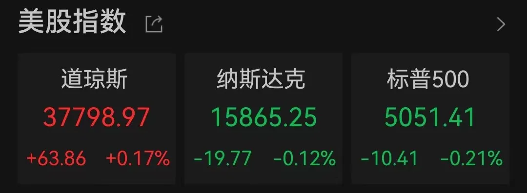 Wind数据显示,截至当地时间4月16日收盘,美股道指涨0.17%,标普500指数跌0.21%,纳指跌0.12%。