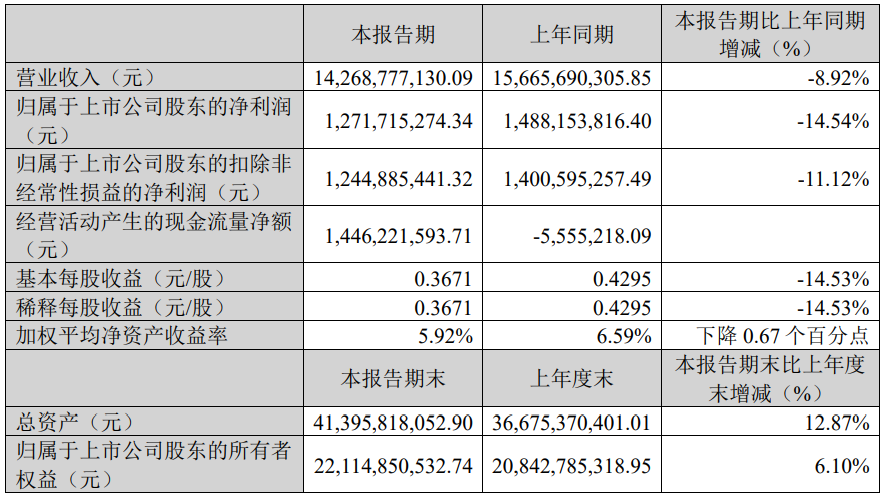数据显示,2024年1-3月份,双汇发展肉类产品总外销量78.09万吨,同比下降 4.43%;实现营业总收入143.08亿元,同比下降8.92%;实现利润总额17.50亿元,同比下降9.86%;实现归属于上市公司股东的净利润12.72亿元,同比下降 14.54%。