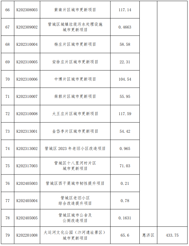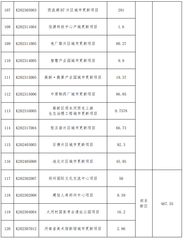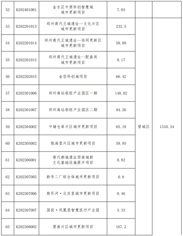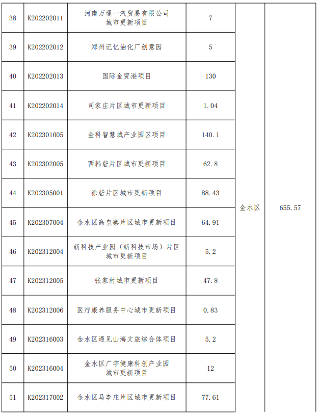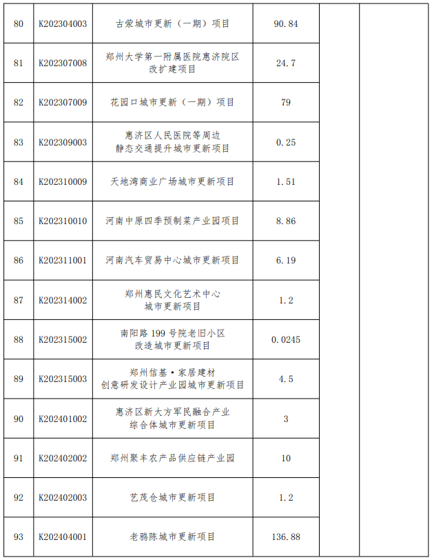 附郑州市城市更新项目库清单: