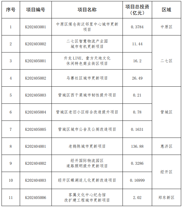 【大河财立方消息】4月24日消息,郑州市城市更新工作领导小组办公室日前发布通知,对城市更新项目库进行调整并予以发布。