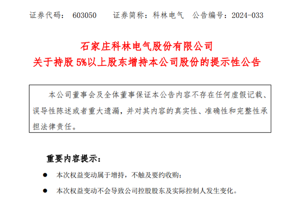 4月8日,国投集团单日买入科林电气股票406.5万股,持股比例从6%增至7.79%。如今更是通过增持逼近二度举牌线。