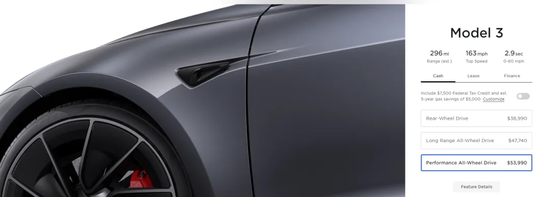 据特斯拉美国官网显示,将Model 3高性能版本价格从52990美元上调至53990美元。