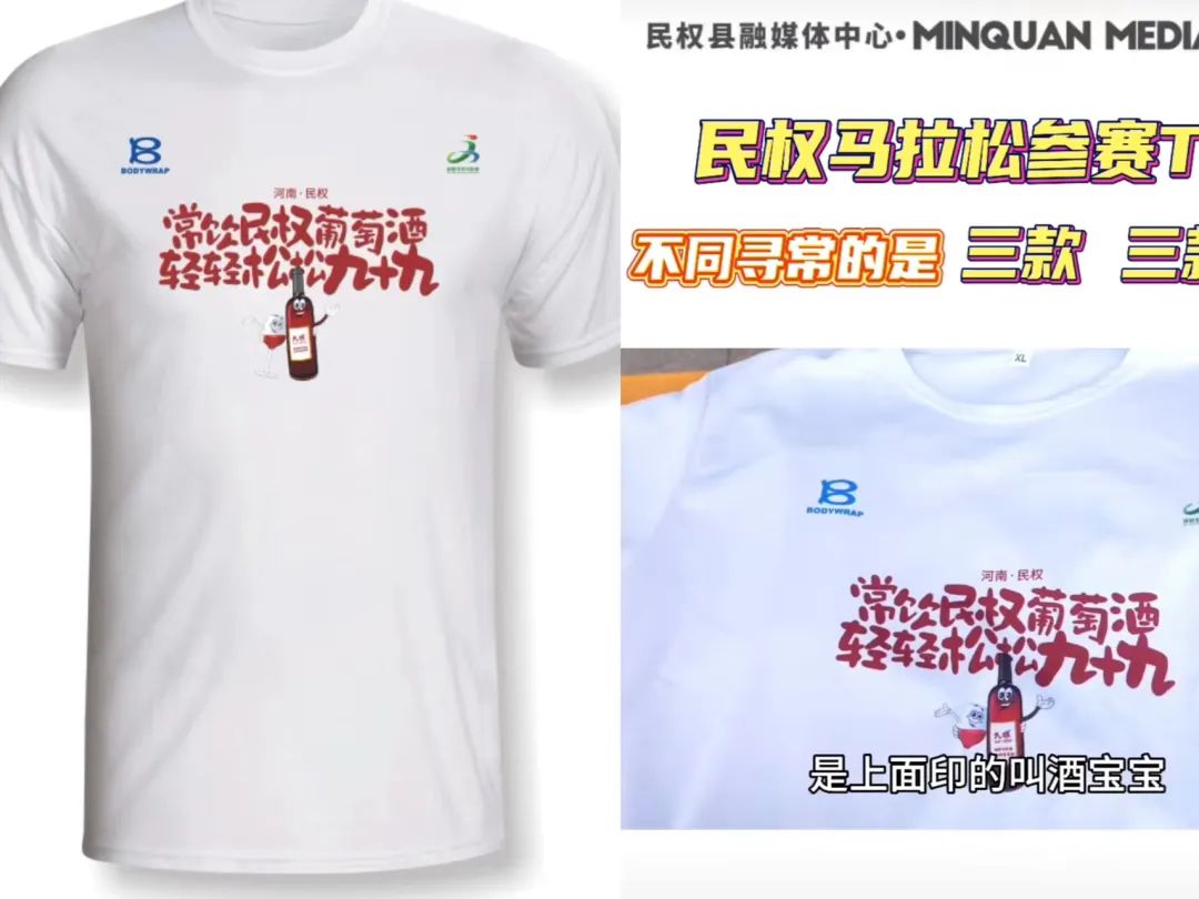 参赛服整体以白色为主色调,正面应有印有“民权三宝”,分别是象征着“中国冷谷”的冷宝宝、“葡萄酒之乡”的酒宝宝、代表“全国食用菌强县”的菌宝宝。