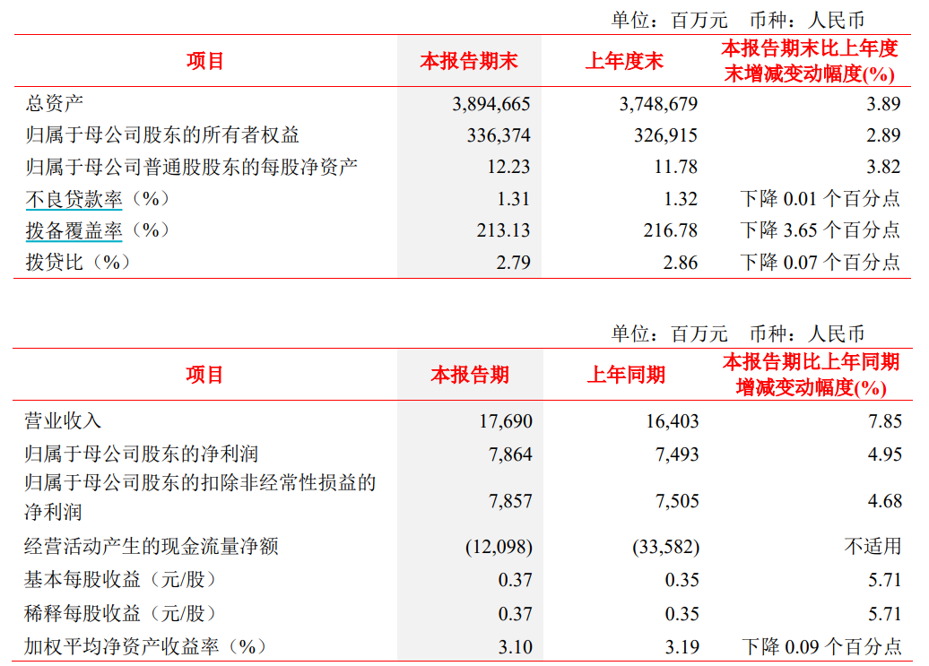 今年一季度,北京银行实现营业收入176.90亿元,同比增长7.85%,主要受规模增长和非息收入增长等因素影响;归属于母公司股东净利润78.64亿元,同比增长4.95%;加权平均净资产收益率(年化)12.39%,盈利水平保持稳健。