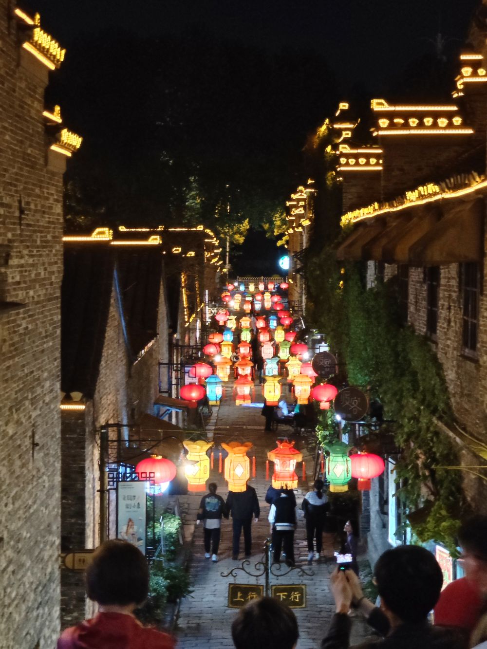 夜幕降临,西津渡迎来了颜值的巅峰时刻。屋檐上挂着的灯笼亮起,沧桑古街变得朦胧而神秘,檀板敲打,京胡伴奏,街角的尚清戏台灯火辉煌,传统戏曲表演轮番登场。夜市里的人声不绝于耳,锅盖面的香气飘散,烟火氤氲。