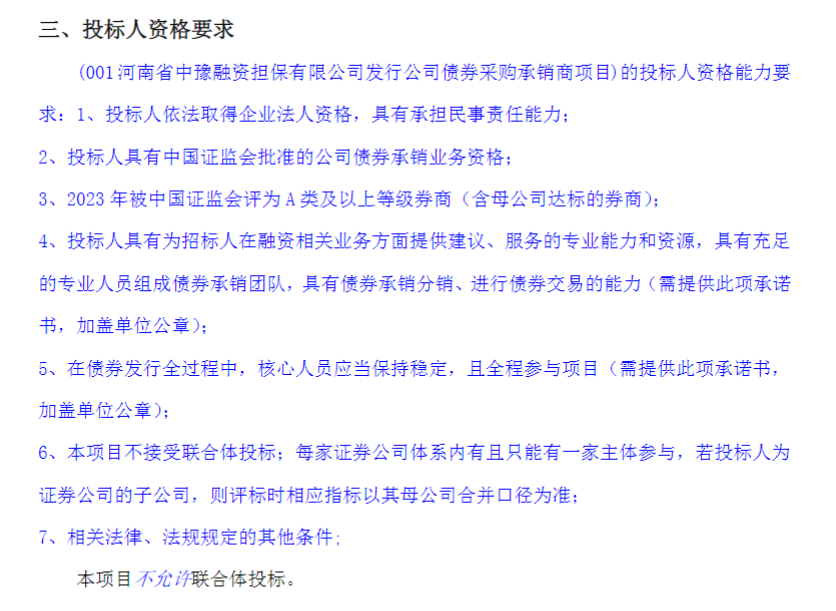 【大河财立方消息】5月22日,河南省中豫融资担保有限公司(简称:中豫担保)发布招标公告,公开采购公司债券承销商。