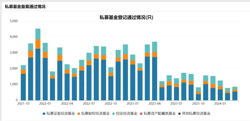Wind数据显示,今年2月,仅780只私募基金完成备案登记,创下历史最低备案纪录;去年10月,共有821只私募基金完成登记,首次低于1000只;今年3月,共858只基金登记备案,再度低于1000只。