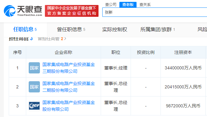 值得注意的是,近日国家集成电路产业投资基金三期股份有限公司成立,董事长同样为张新。