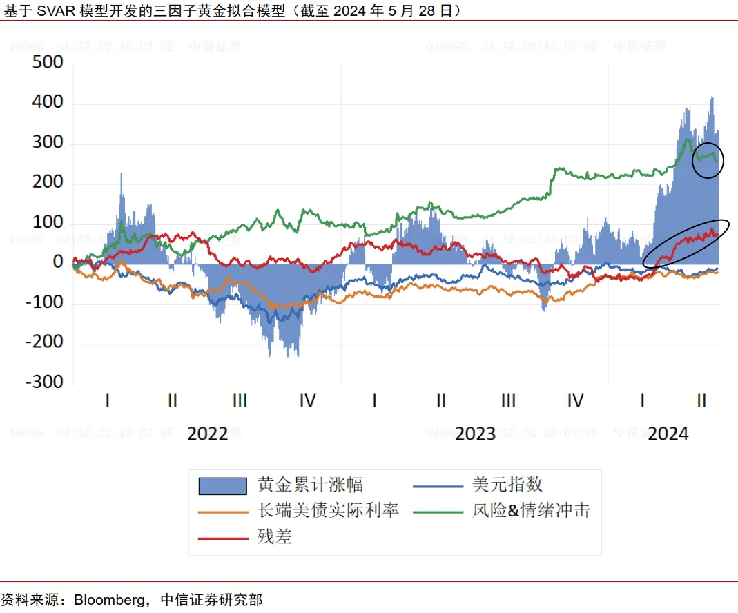 【大河财立方消息】5月31日,中信证券研报认为,近期海外市场交易主线尚未结束,市场对于海外通胀黏性、降息预期延后、美国实际经济增速回落的担忧仍然存在,叠加地缘政治扰动事件,黄金价格短时调整后或仍可期。