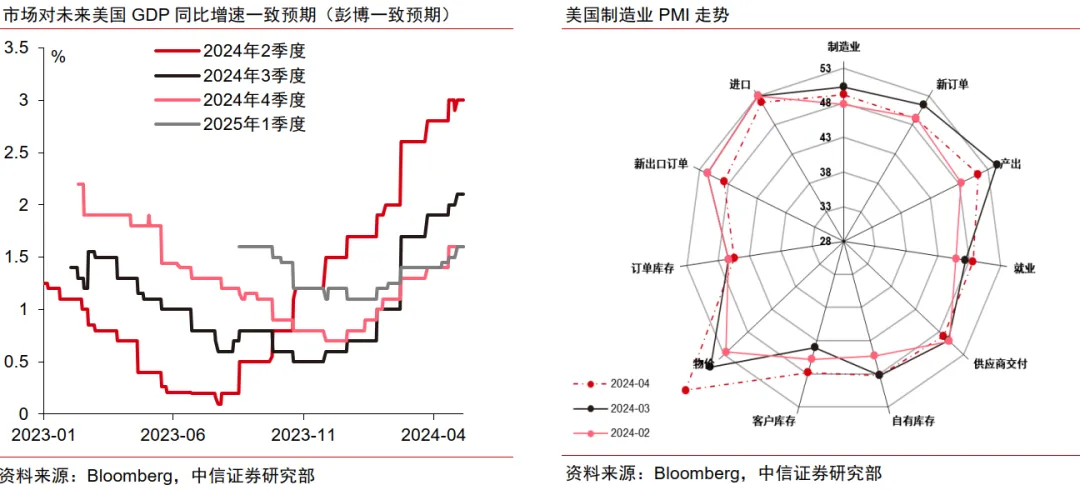 交易主线:通胀回落速度慢于经济回落速度引发市场对美国通胀黏性仍存、以及对美国实际经济增速回落和降息预期延后的担忧。