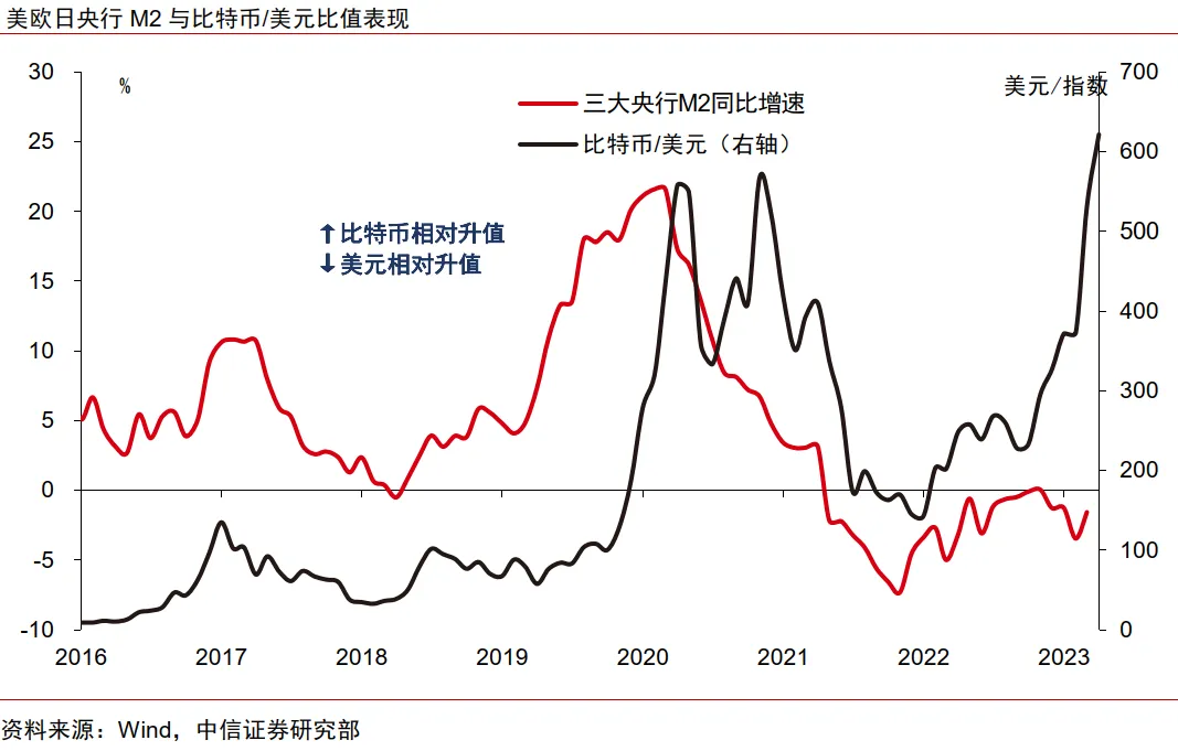 全球流动性变化:比特币的设计初衷便具有规避纸币币值波动风险的特性,全球流动性拐点相对比特币价格走势具有一定的领先性;
