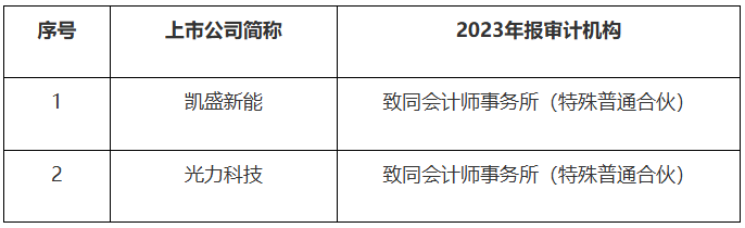 抽取结果显示,凯盛新能、光力科技两家上市公司被抽中检查,两家公司2023年报审计机构均为致同会计师事务所(特殊普通合伙)。