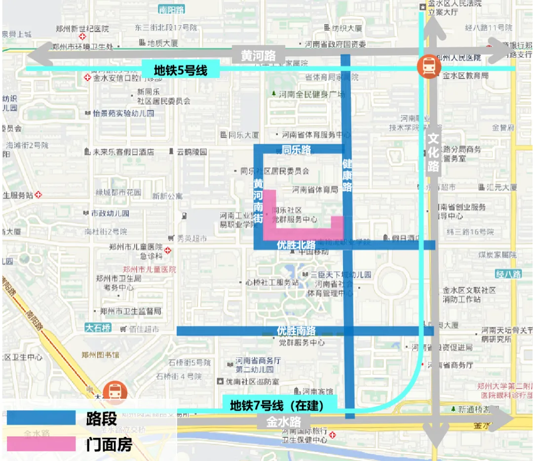 优胜路片区特色商业街区城市更新项目包含同乐路东段、黄河南街南段、优胜北路东段、优胜南路、健康路,更新道路总长度约2930m,涉及门面房面积约5750㎡。总投资额为11831.92万元。实施主体为郑州市城市有机更新建设有限公司。