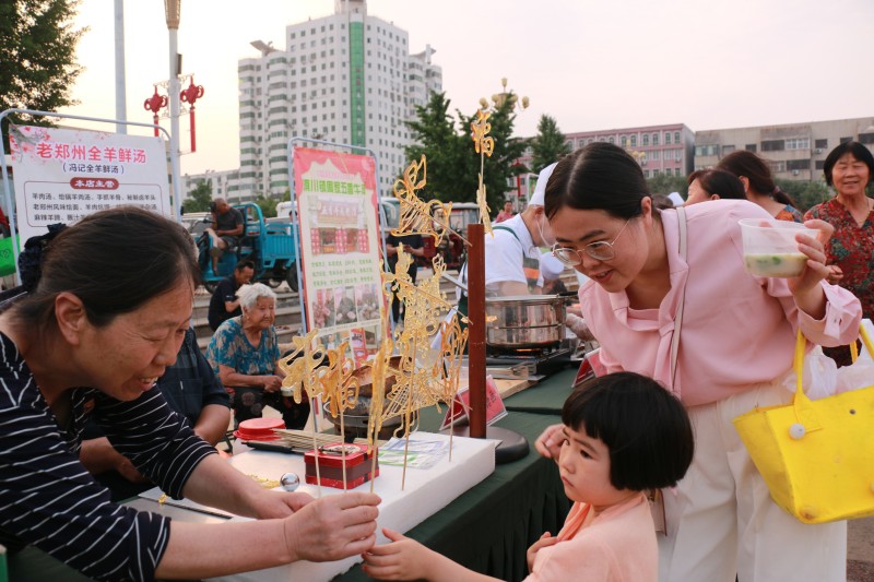非遗集市网罗各类非遗美食和非遗好物,枣花馍、赵记红光卤肉、赵记丸子汤、冯记全羊鲜汤、荥阳牛肉垛子、吹糖人、葛记焖饼、洧川豆腐、锅盔、五香牛肉、老丁香辣酱、黑豆腐等非遗美食,让群众一饱口福。耿氏香、香包、钩编等极具地域特色的非遗好物,让非遗在连接现代生活中绽放迷人风采。