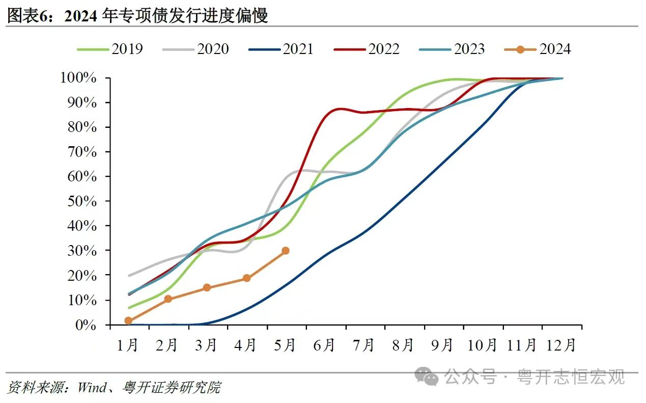 今年5月份,专项债发行明显提速,截至6月17日新增地方政府专项债券发行额约1.35万亿元,仍有2.55万亿元待发。今年总额1万亿元超长期特别国债也在5月份启动发行,截至目前已经发行1150亿元,尚有8850亿元待发。